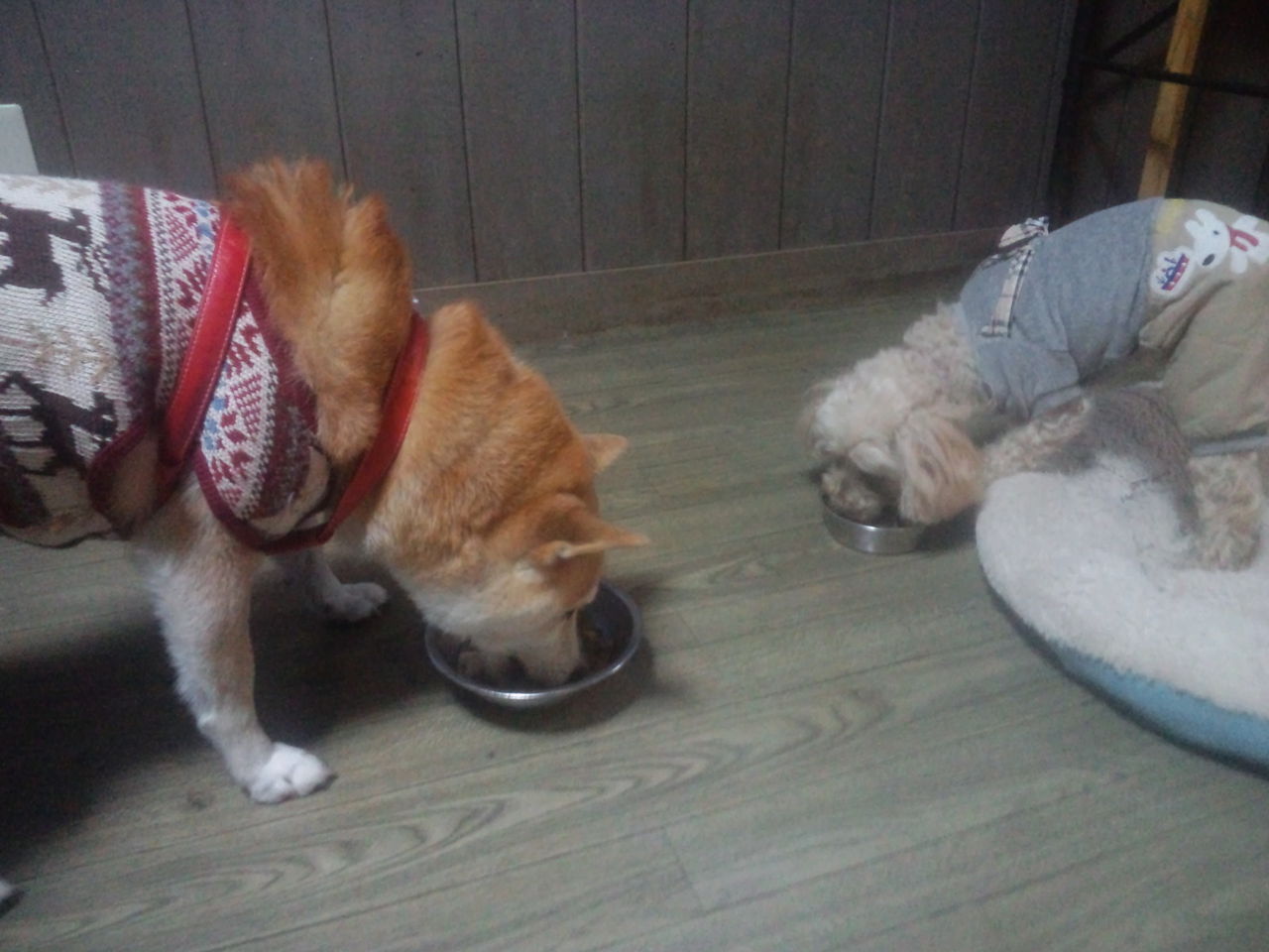 生涯預かり柴福太郎君とミックスポー君、しっかり完食しました。
