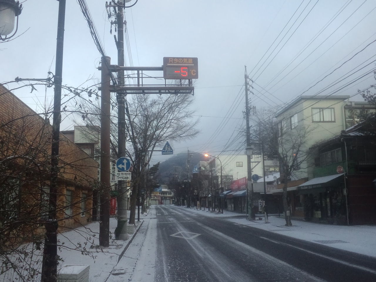 今朝の軽井沢の気温がマイナス5℃。 天気は晴れてきましたが、路面はバリバリ凍ってます。通行にご注意ください。