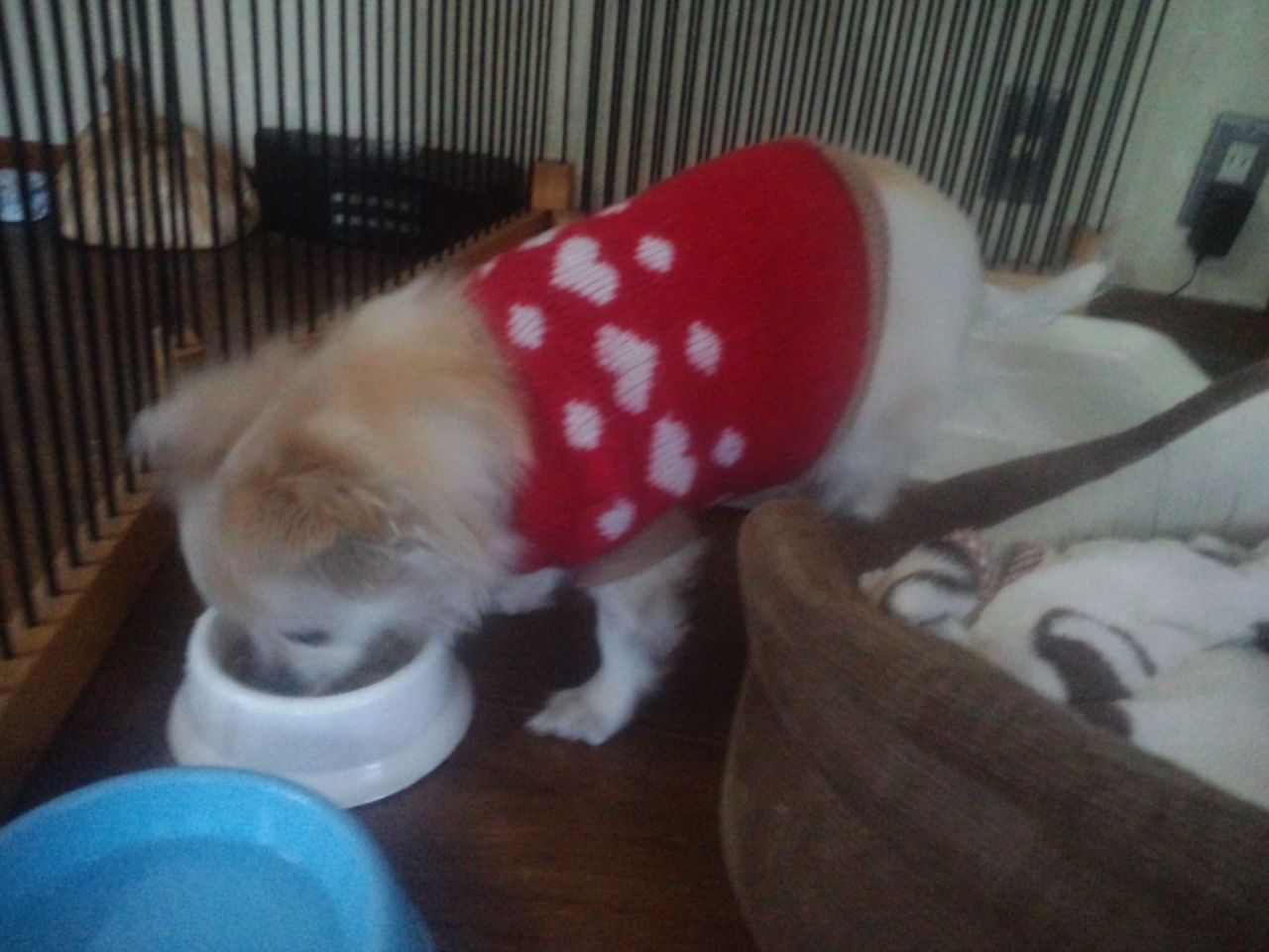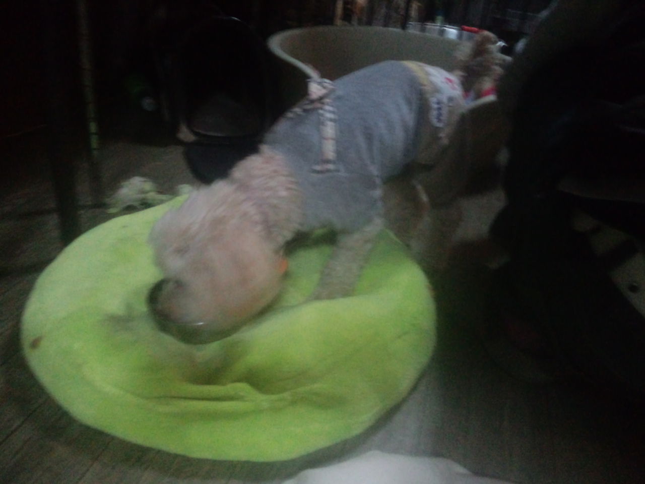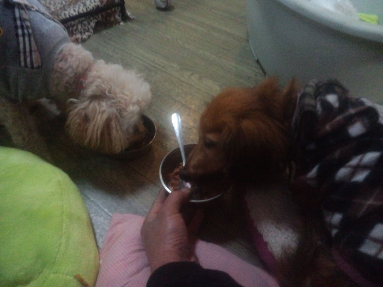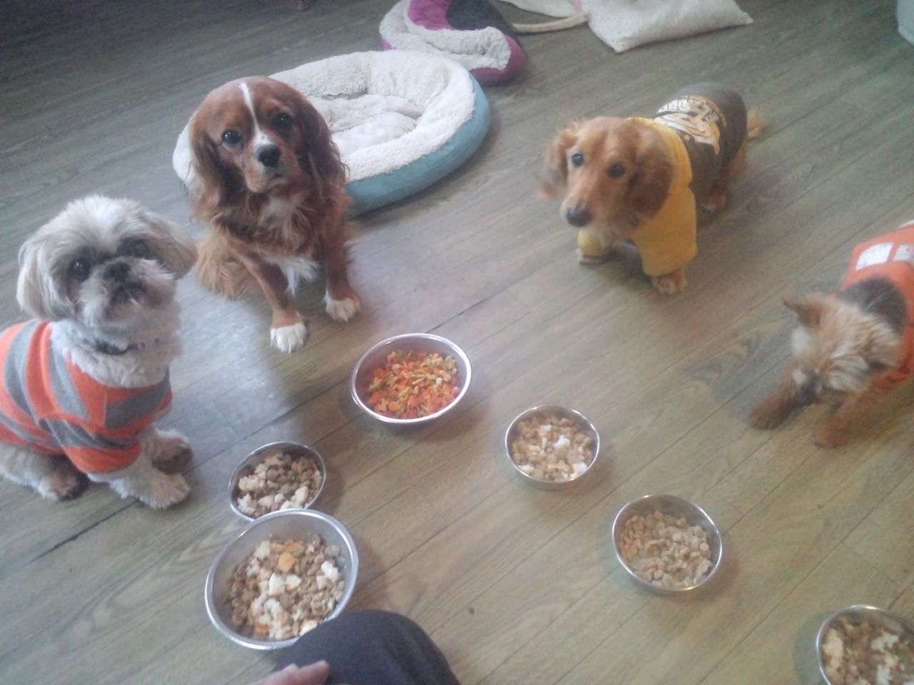 生涯預かりダックスズのラブ君、口をつけません。チャコ君、ヨーキーアイちゃんとシーズーココ君、しっかり完食しました。