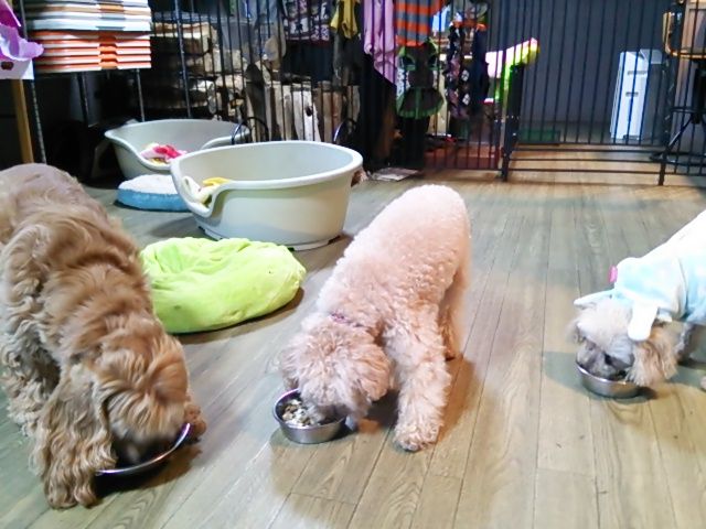 生涯預かりコッカーチャッピーちゃんとチワワチョビ君、トイプーテディ君とベラちゃん、しっかり完食しました。