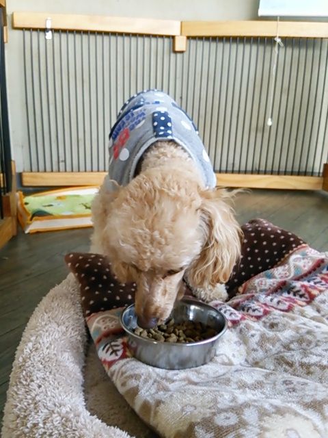 生涯お預かりトイプーべラちゃん口をつけませんでした。テディくんはしっかり完食しました。