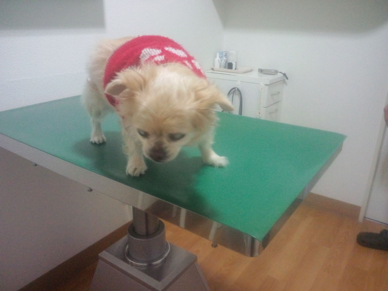 さあ、今月の結果はどうなるでしょうか?大人しく検査を受けてるチョビ君でした。