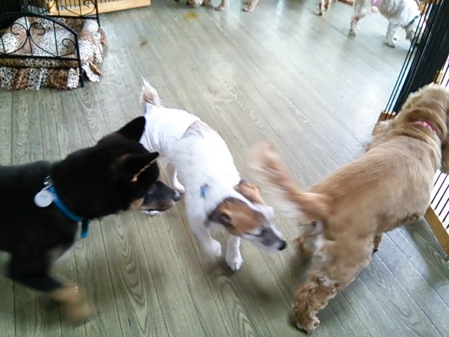 テスくんは初めてのご利用ですが、緊張する様子もなくみんなに遊びを仕掛けたり、挨拶したりと忙しそうにしています。 リキくんはダディー慣れっこなのでマイペースに過ごしています。