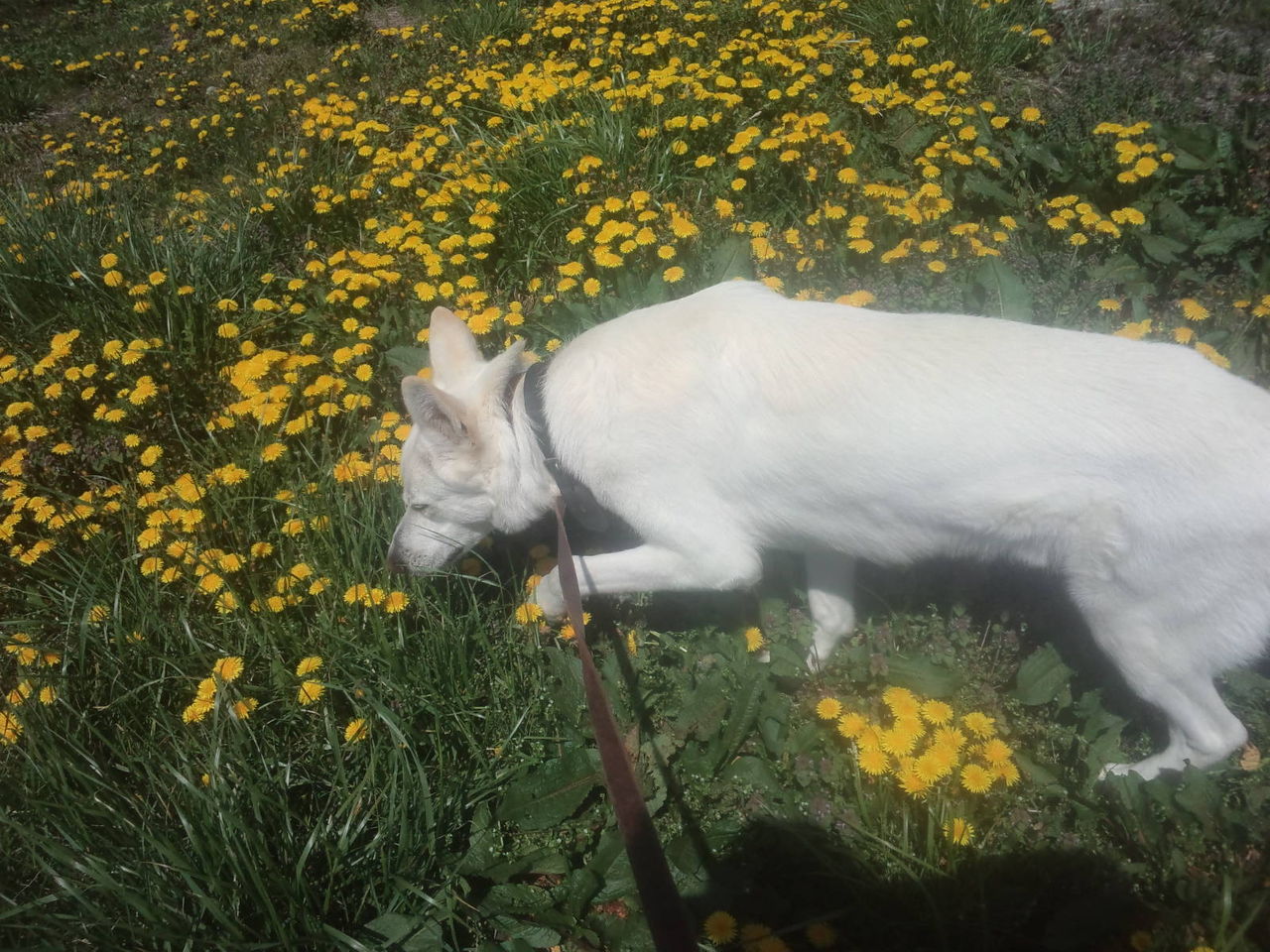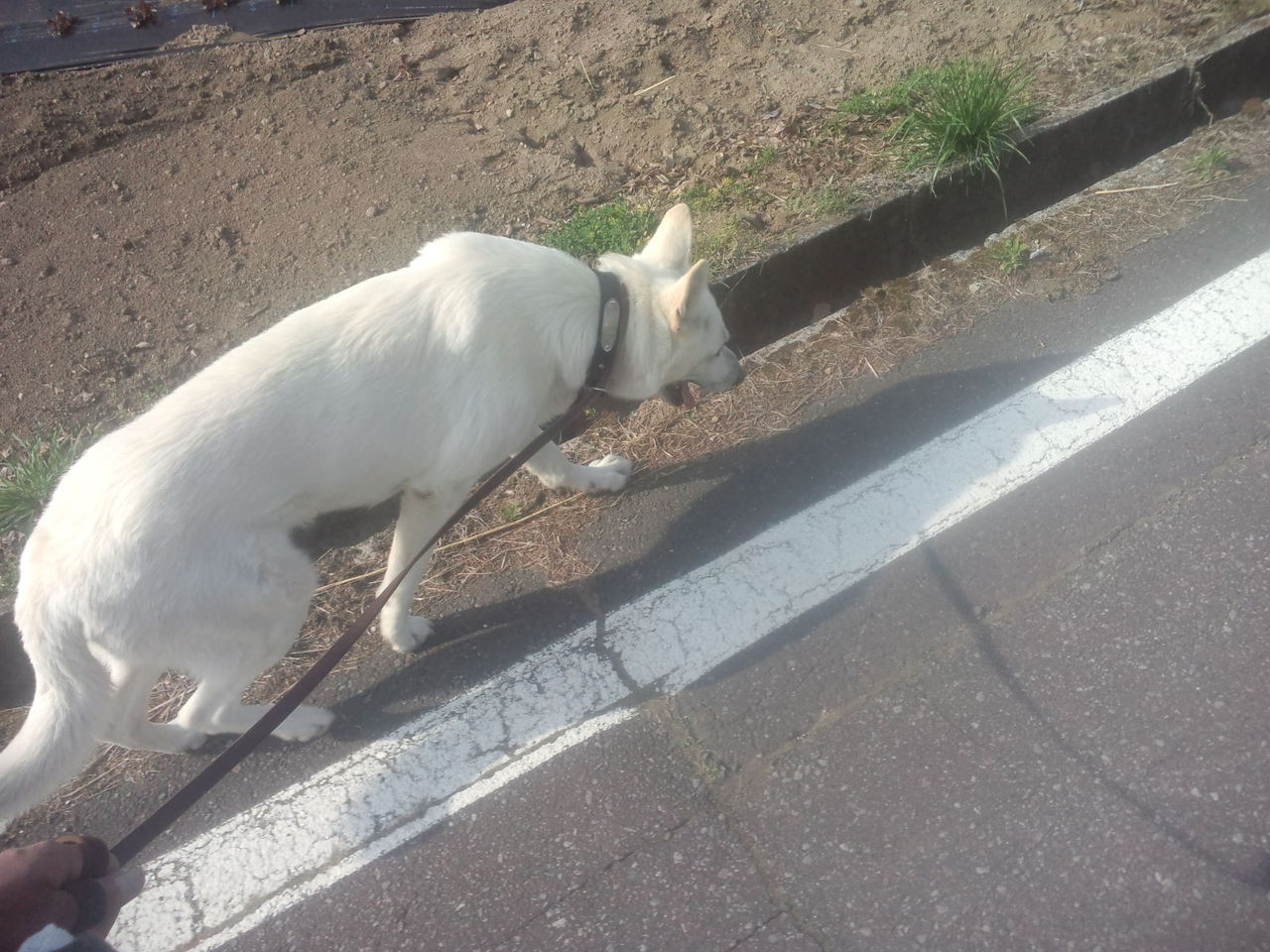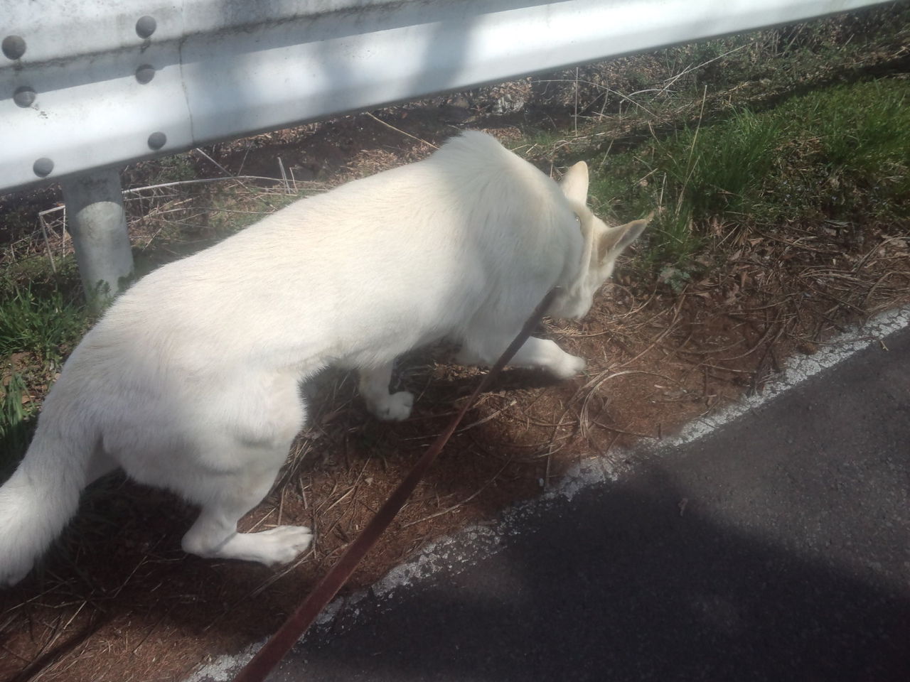 いっぱい臭いを嗅いで、暑いのか用水路をジャバジャバ歩いてました。