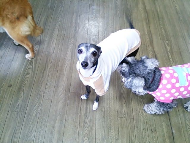 あまりわんちゃんが好きではないジジちゃんですが、今日の子達は平気なのか積極的に寄っていき挨拶しています。