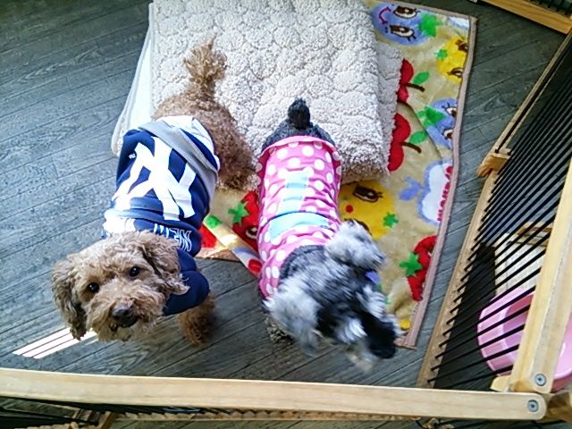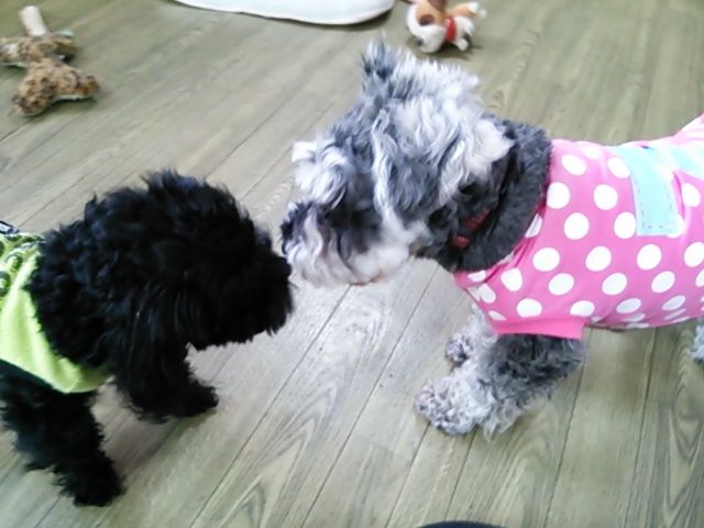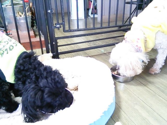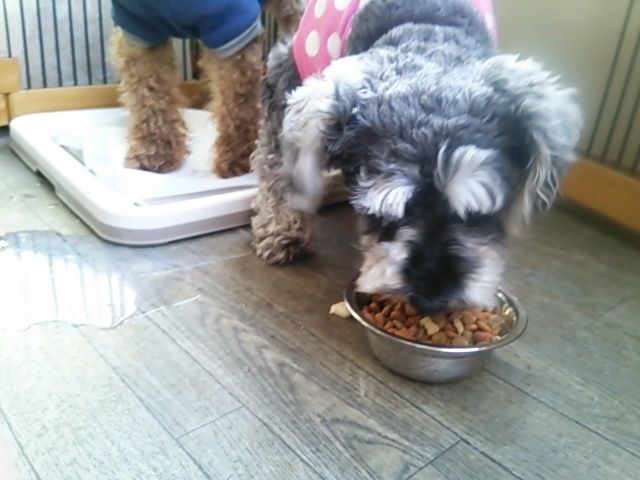トイプーラッキーくん、シュナウザービズちゃん少しだけ食べました。