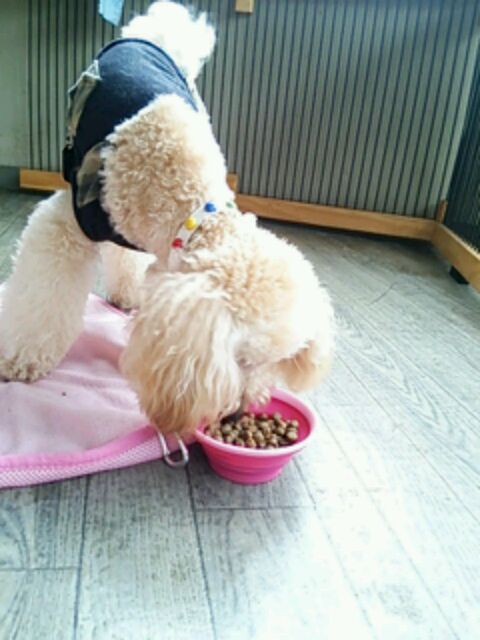 トイプーファーファくん少しだけ食べました。ブーフくんはしっかり完食しました。