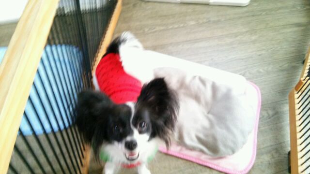 みんなと挨拶をしたら、いつもの定位置にいます。 トイプー虎治郎と仲良しです♪