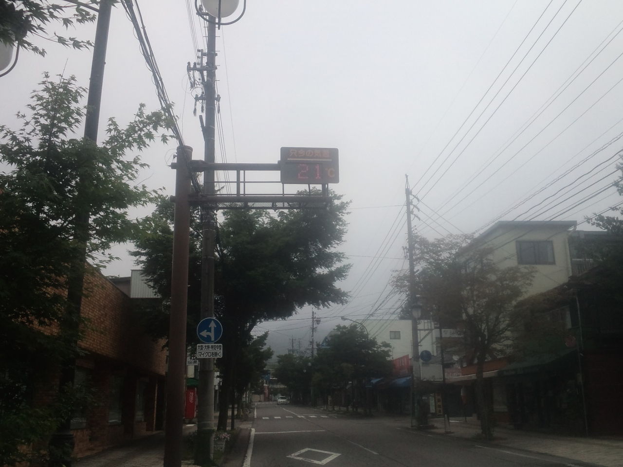 今朝の軽井沢の気温は21℃、天気は曇り空です。