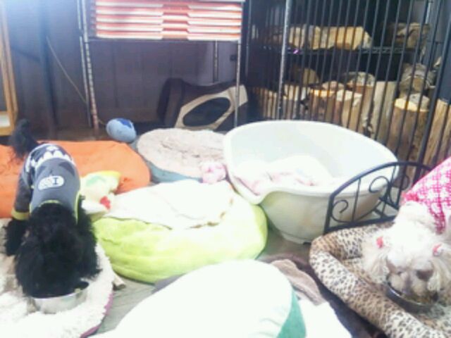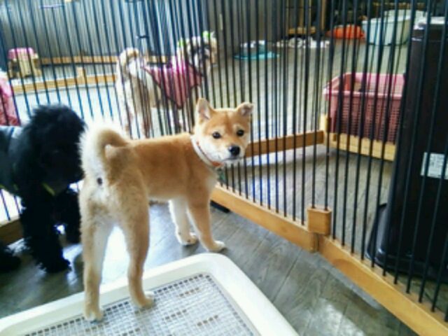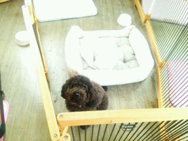 初めてのペットホテルだそうです。 緊張してますね~ しばらくサークルにいてもらって落ち着いたら出してみたいと思います。