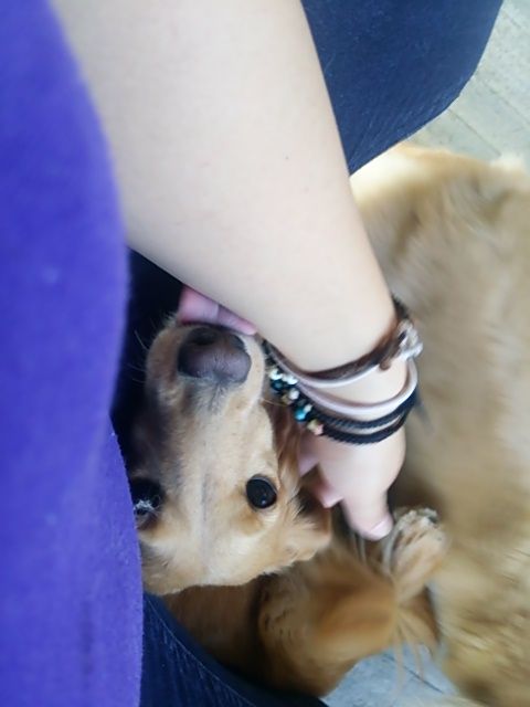 とっても甘えん坊のキュウくん。スタッフに撫でろ攻撃しています♪ 緊張していて他のわんちゃんにビビり気味なので時間が経ったら一緒にしてみます。