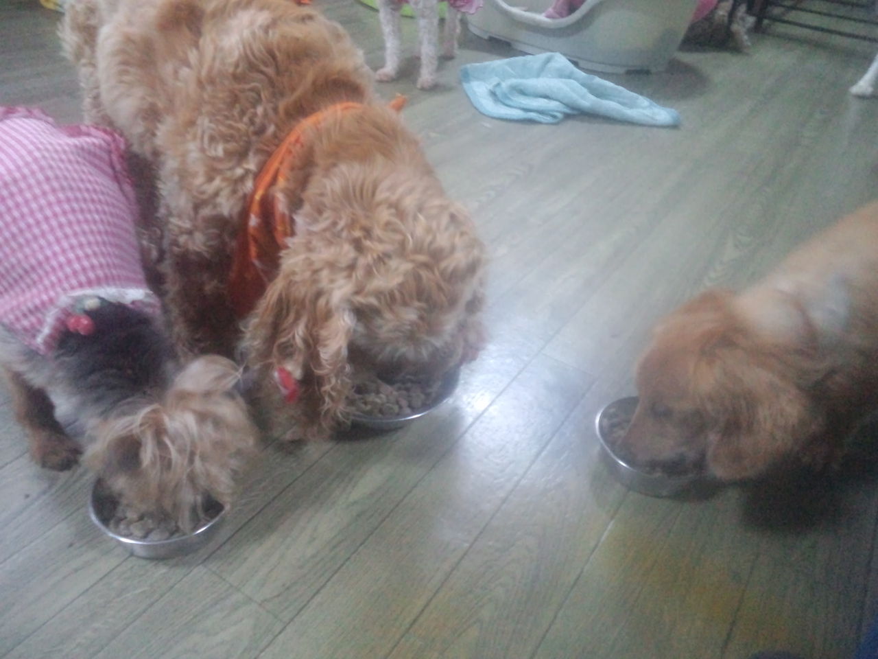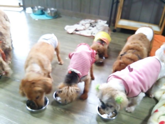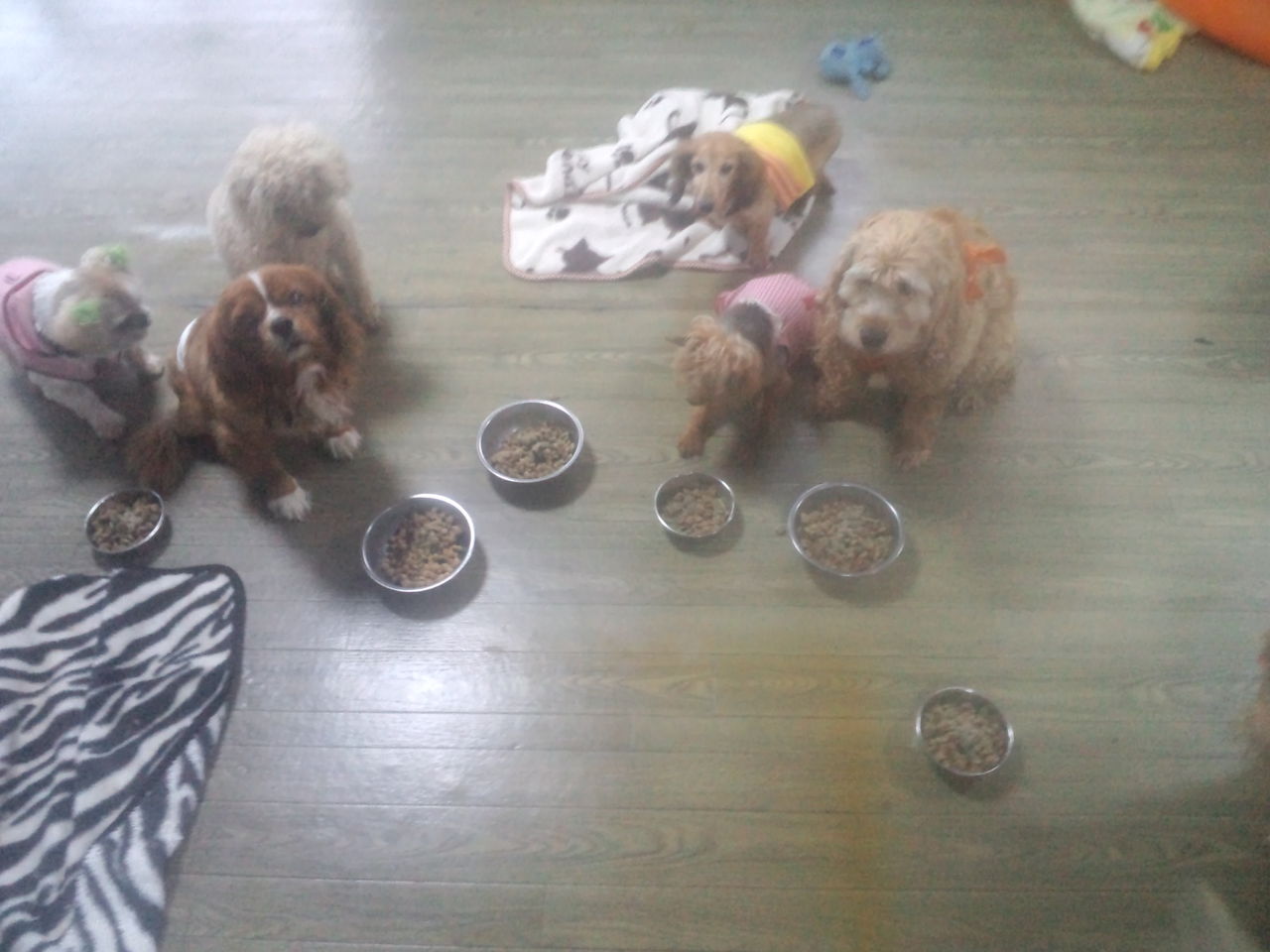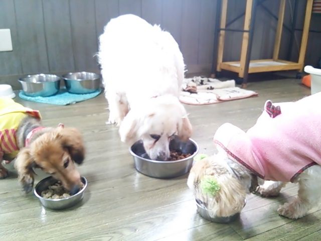 長期預かりミックスリヨンちゃん、しっかり完食しました。 生涯預かりダックスズのラブ君とチャコ君、ヨーキーアイちゃんとシーズーココ君、しっかり完食しました。