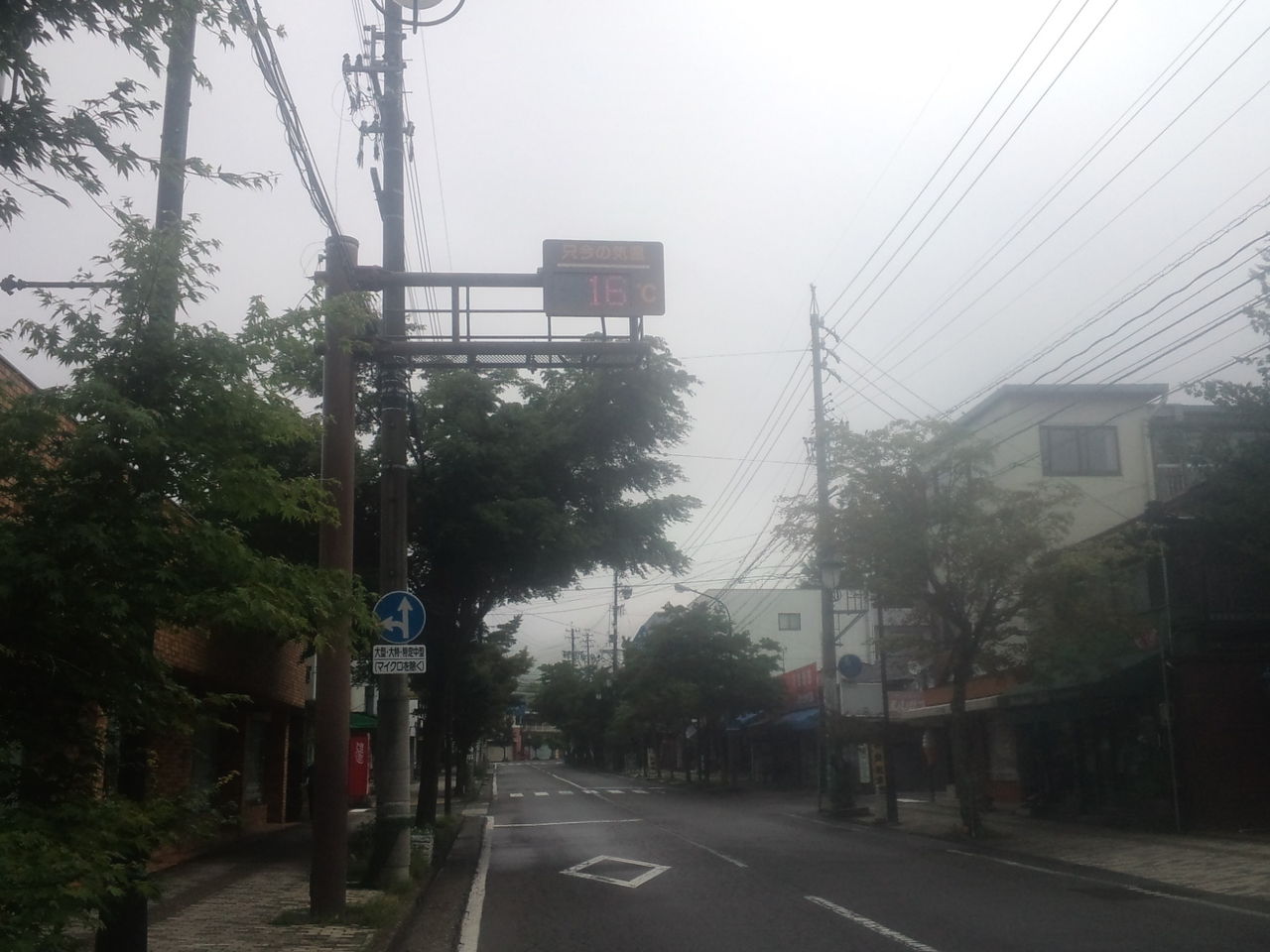 今朝の軽井沢の気温は15℃。天気は雨が時折降りますが、今は止んでます。