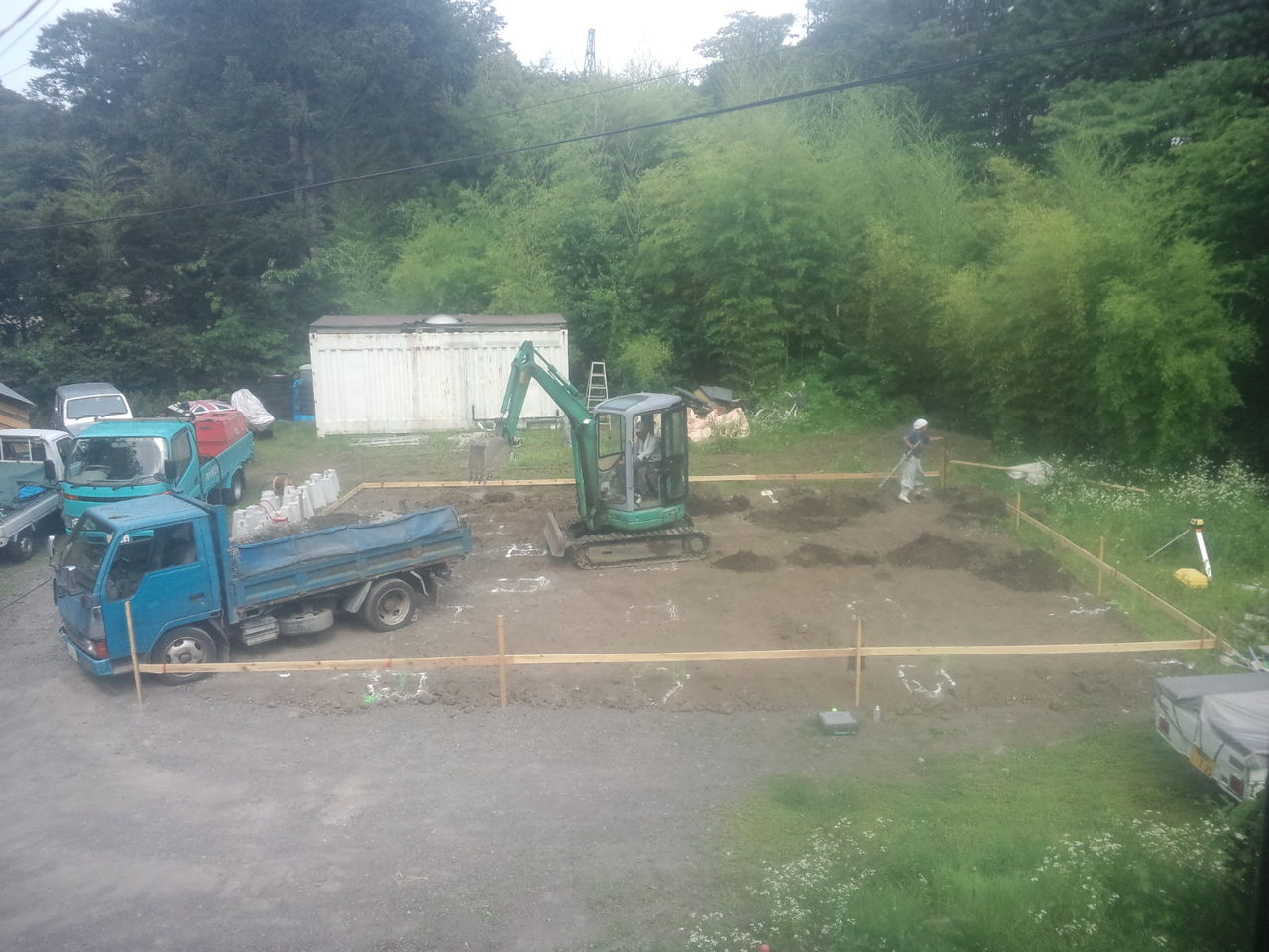 さて、先週末から始まった工事ですが、今日は基礎工事が始まってます。