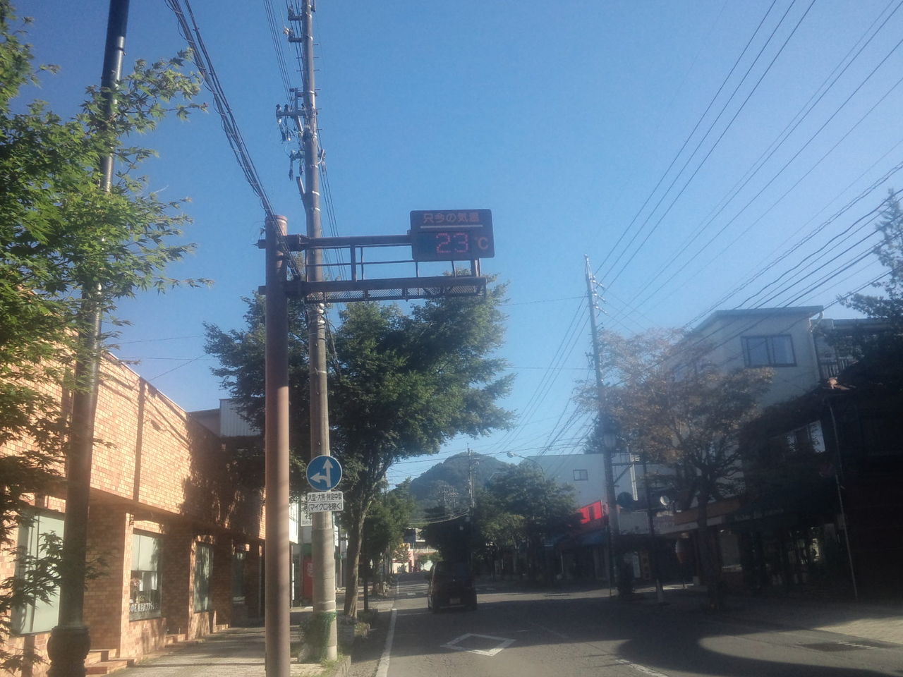 今朝の軽井沢の気温は23℃、天気は快晴です。