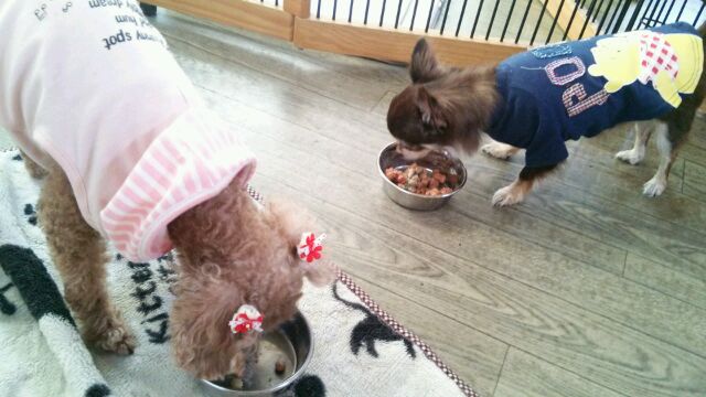 トイプーチェリーちゃん、チワワレンくん口をつけませんでした。