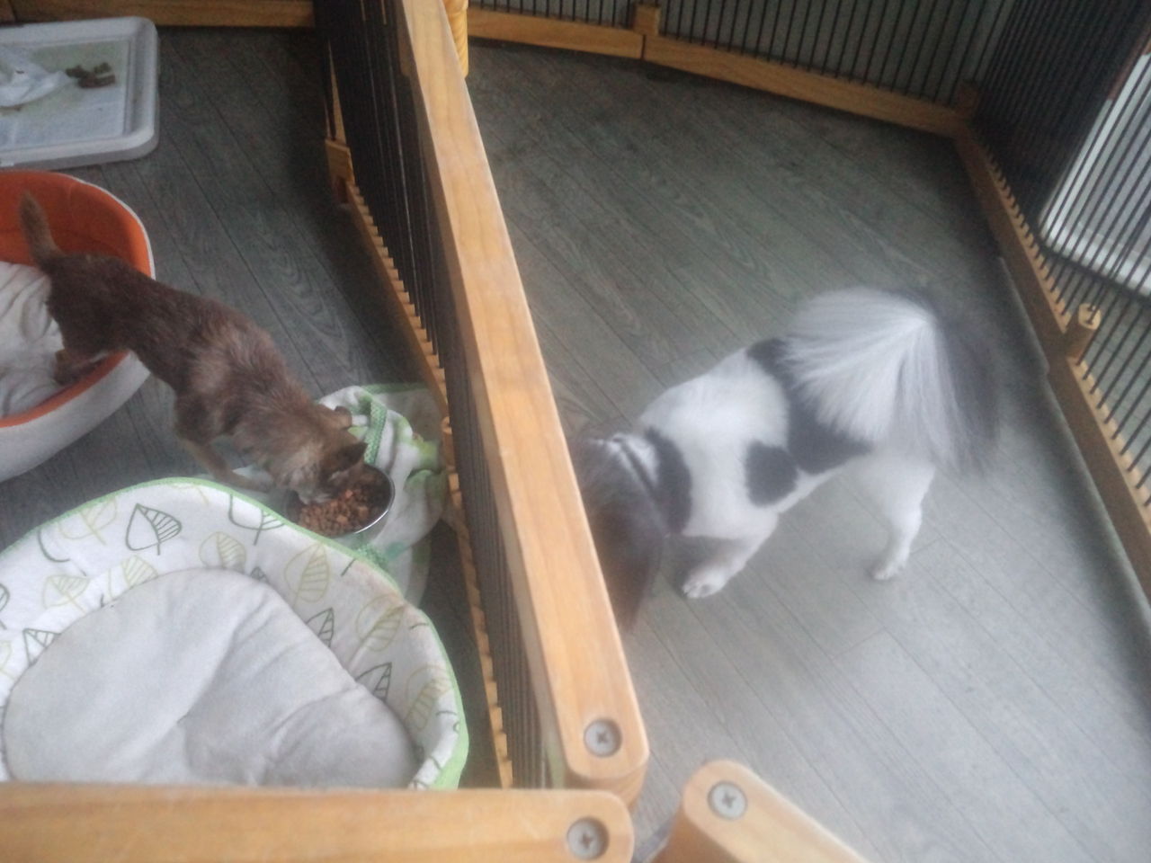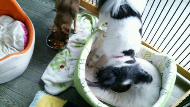 長期預かりパピヨンリュウ君とチワワココちゃん、しっかり完食しました。