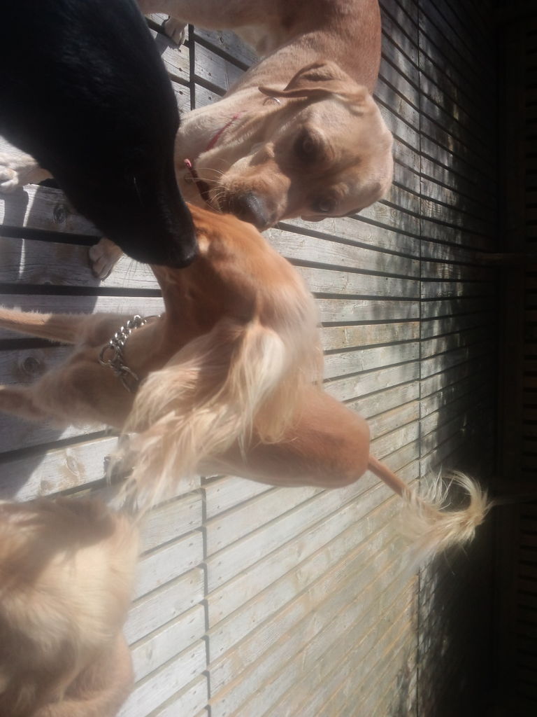 常連サルーキのメルローちゃんがチェックインしました。 夕べ来たみかん君とは久しぶりかな?みかん君から熱烈歓迎されてます。