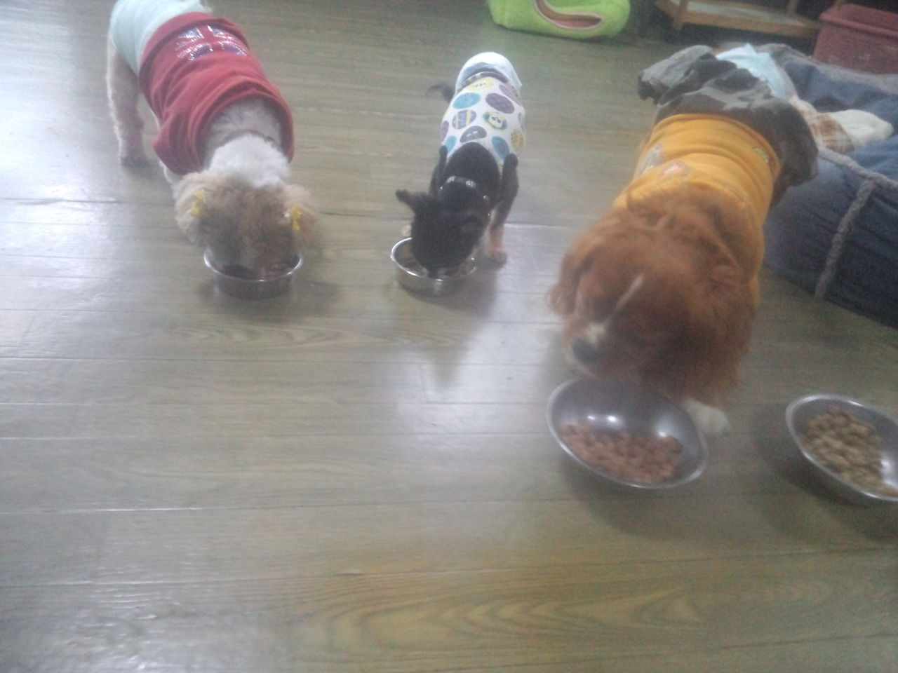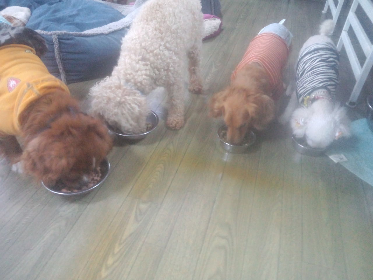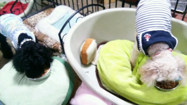 生涯預かりトイプーテディ君とベラちゃん、シーズーココ君チワワ姫ちゃん、しっかり完食しました。