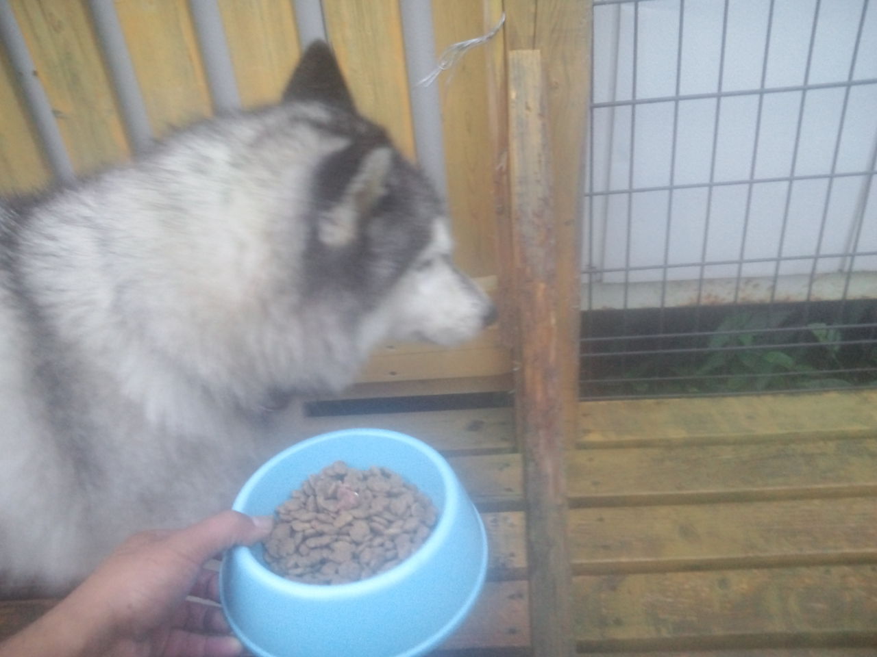 ハスキーのんちゃん、口を付けません。薬用のパンにも口を付けません。