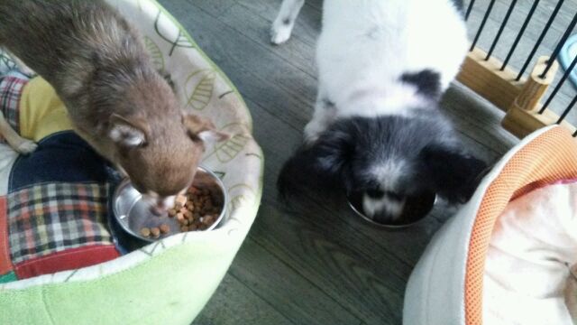 長期預かりチワワココちゃんとパピヨンリュウ君、しっかり完食しました。