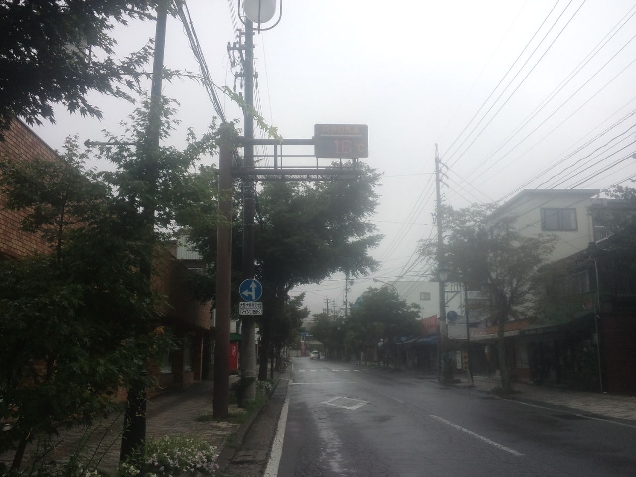 今朝の軽井沢の気温は16℃、天気は霧雨です。