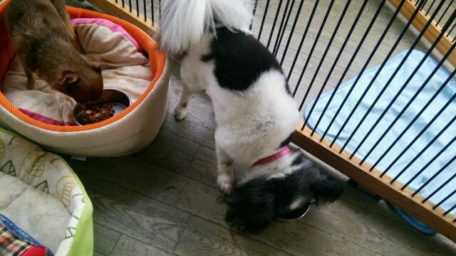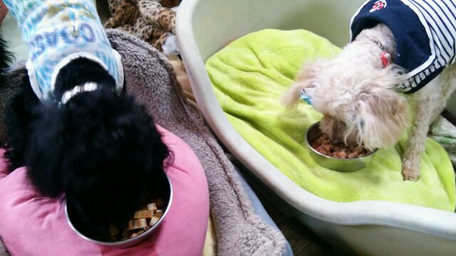 長期お預かりトイプーゆずちゃん、キャバリア大吉くんしっかり完食しました。