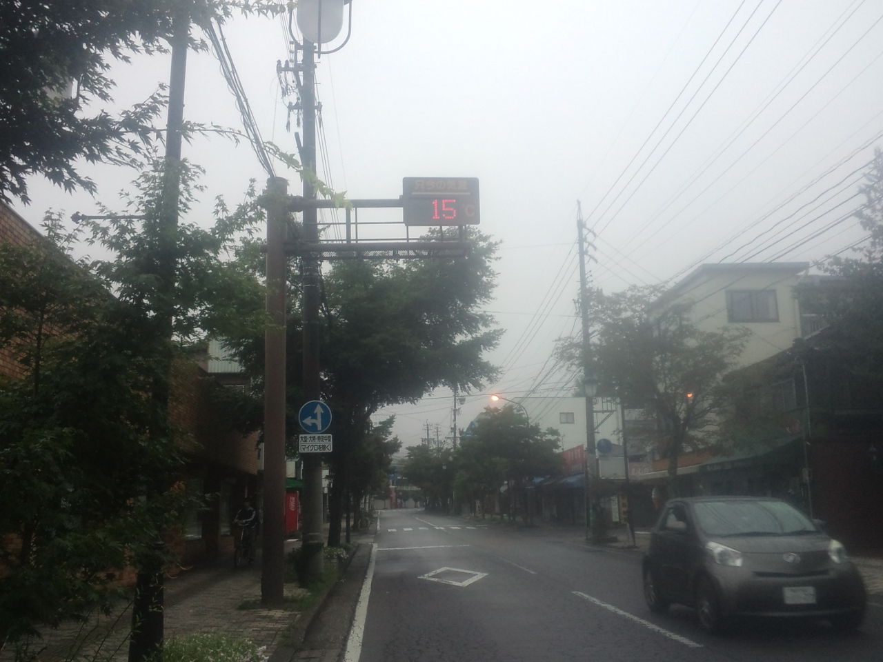 今朝の軽井沢の気温は15℃、天気は霧雨です。