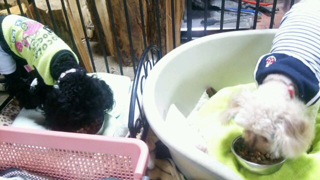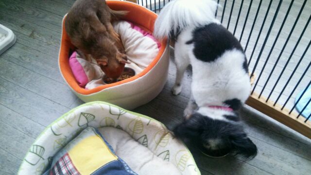 長期お預かりトイプーゆずちゃん、キャバリア大吉くんしっかり完食しました。