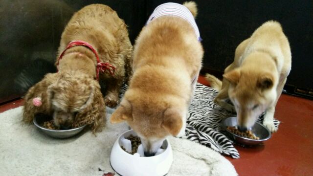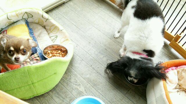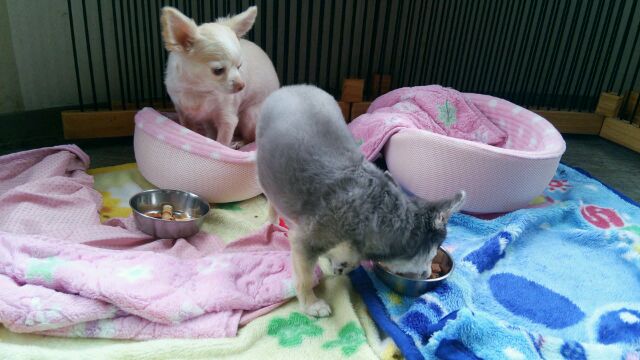 生涯預かりチワワ姫ちゃんとちょび君、コッカーチャッピーちゃんとシーズーココ君、しっかり完食しました。