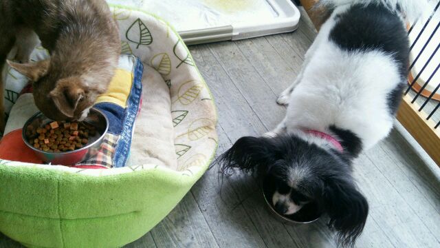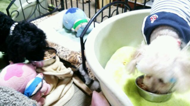 長期お預かりトイプーゆずちゃん、キャバリア大吉くんしっかり完食しました。