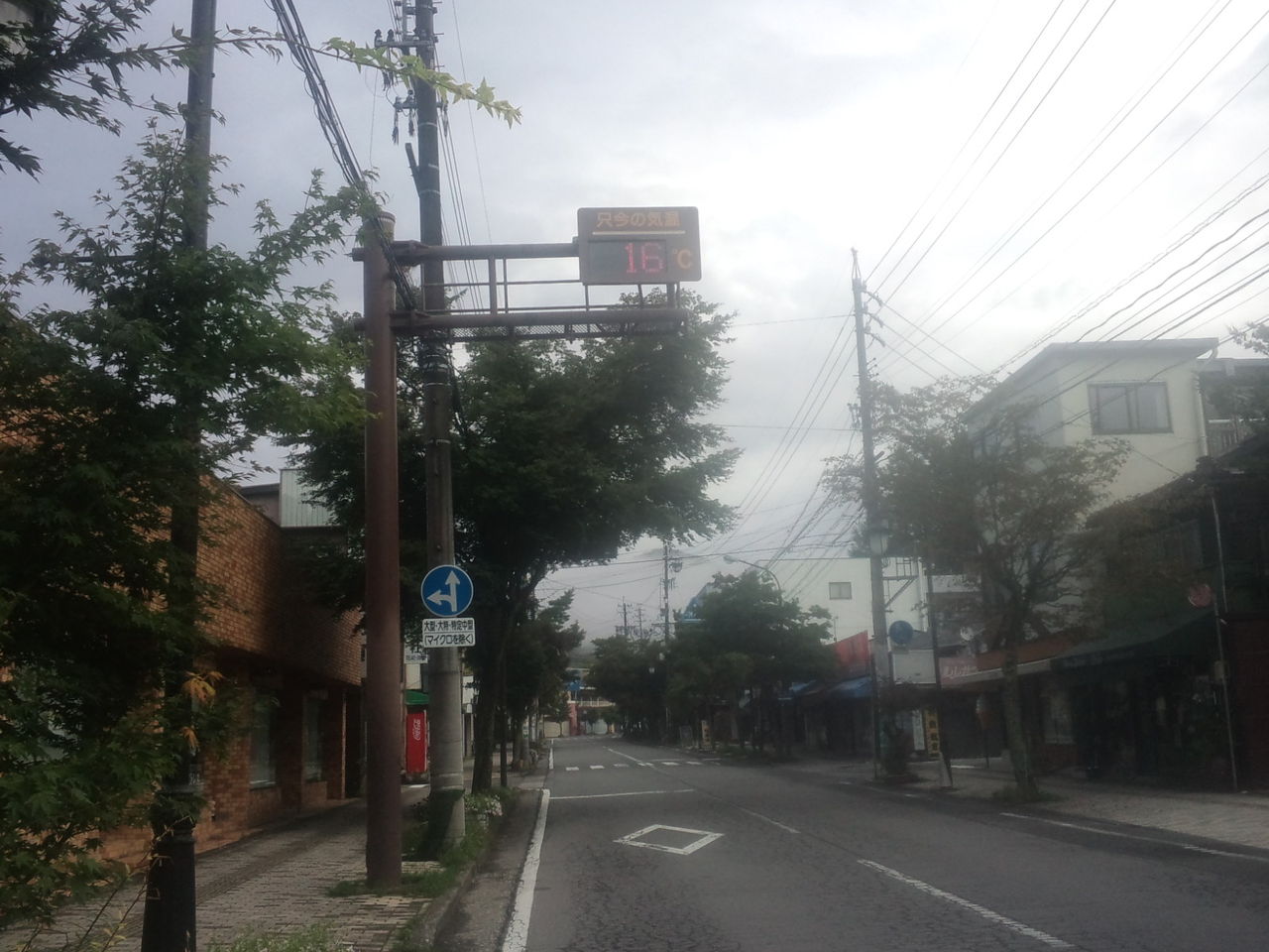 今朝の軽井沢の気温は16℃、天気は曇り空てすが晴れるかな?