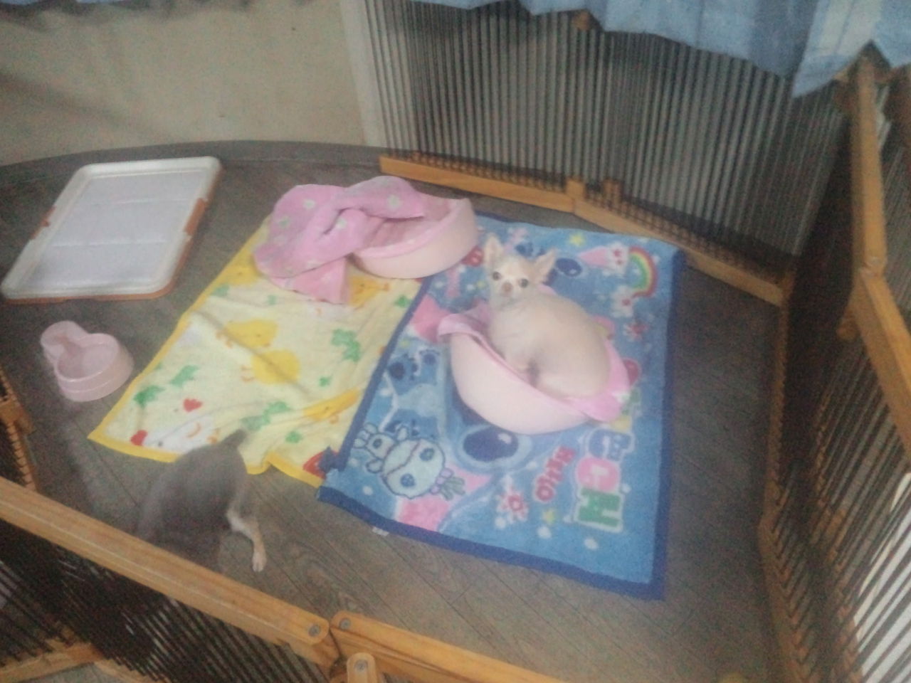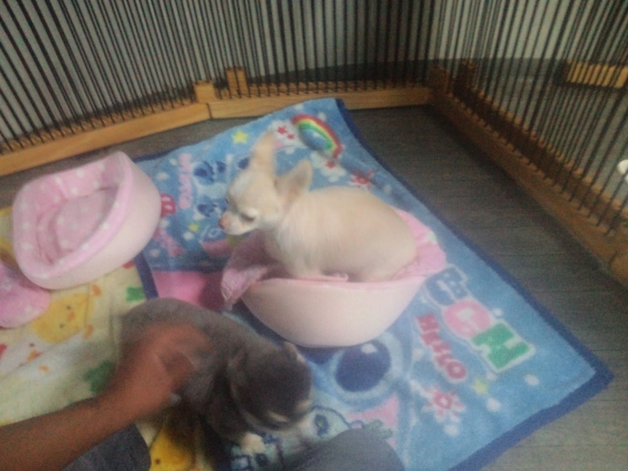 チワワさくらちゃんとモモちゃんがチェックインしました。 クールと言うよりはまだ緊張してるさくらちゃんと、店長に甘えてテンション高いモモちゃんです。 今夜はサークルに居て貰う方が良いかな?少しゆっくり休んで貰いますね。
