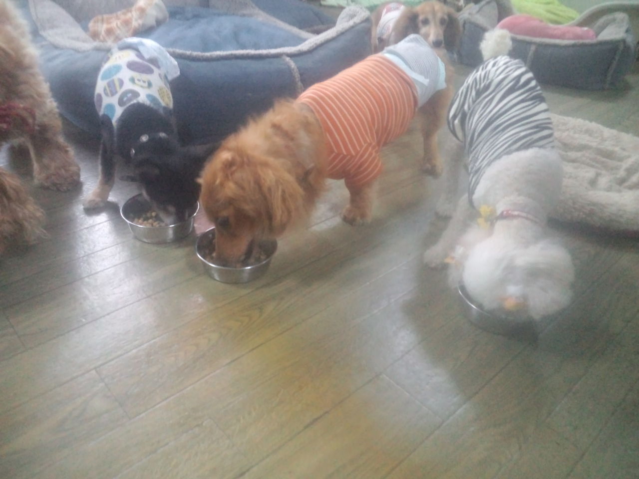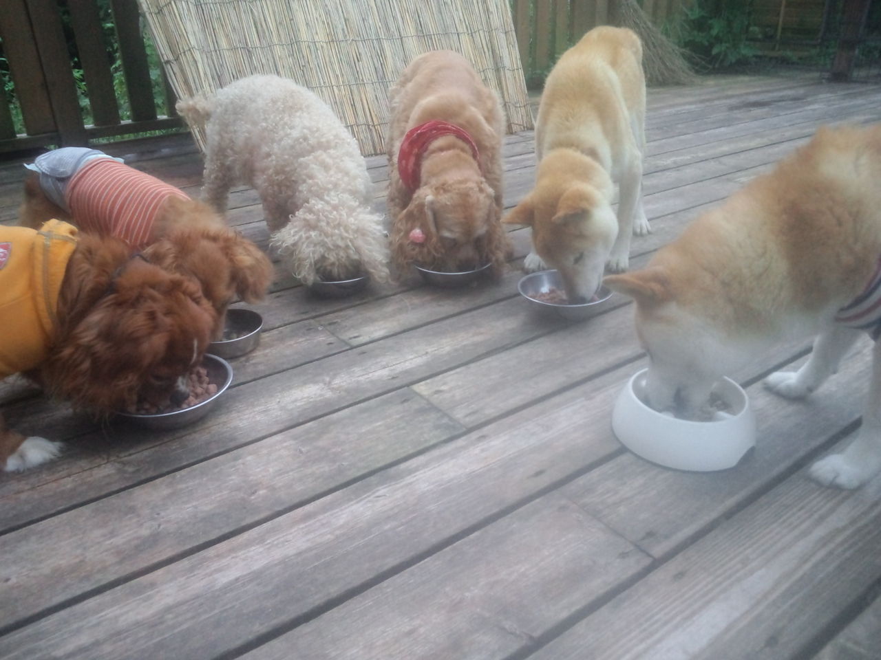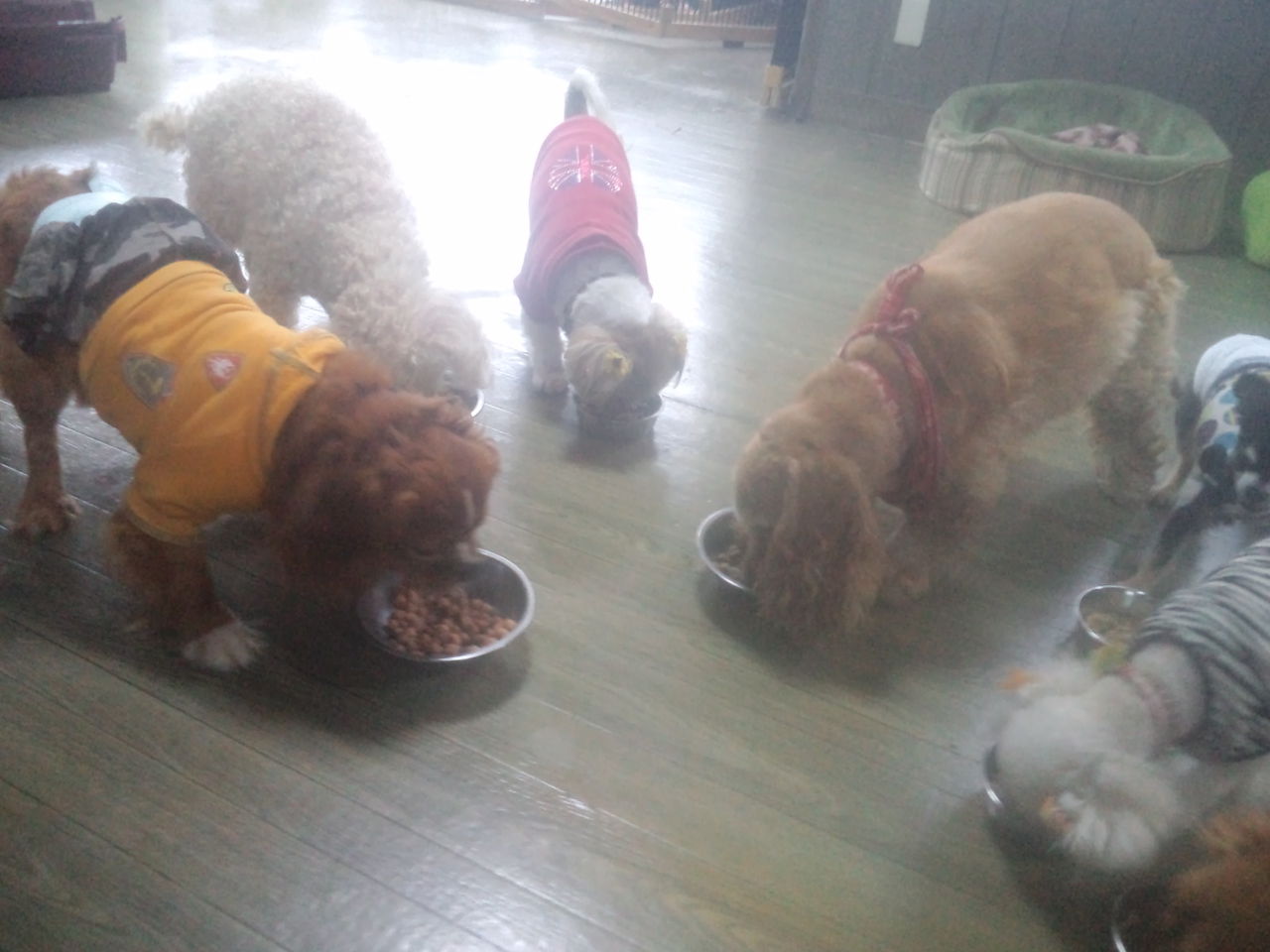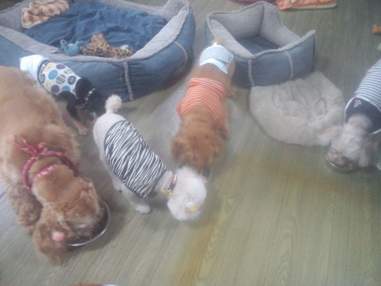 生涯預かりダックスズのラブ君とチャコ君、シーズーココ君とチワワちょび君とチョコたん君、トイプーテディ君とベラちゃん、しっかり完食しました。