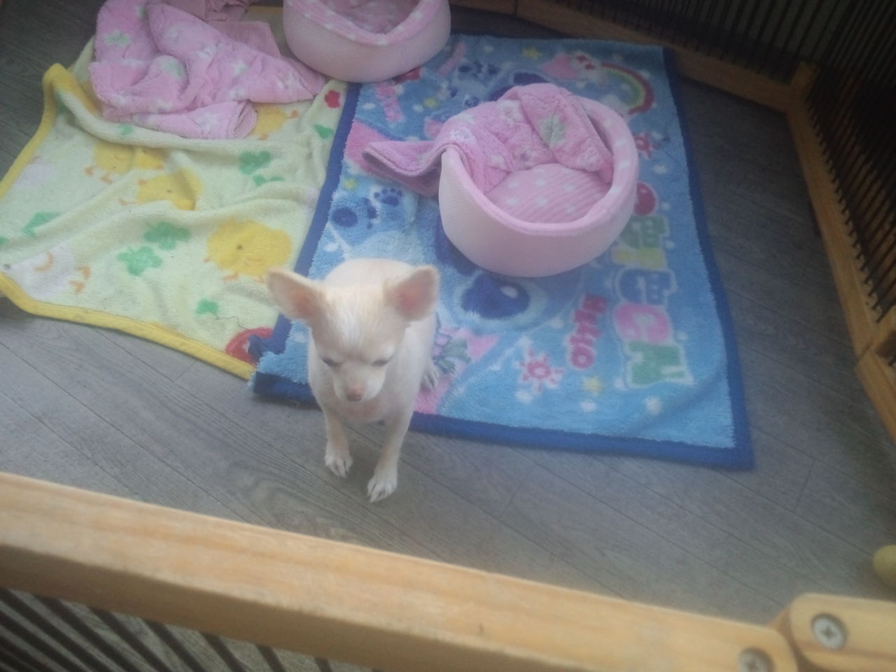 チワワモモちゃんはアクティブで、サークルから出てきてみんなと仲良くしてます。さくらちゃんはサークルに居た方が良さそうですね。