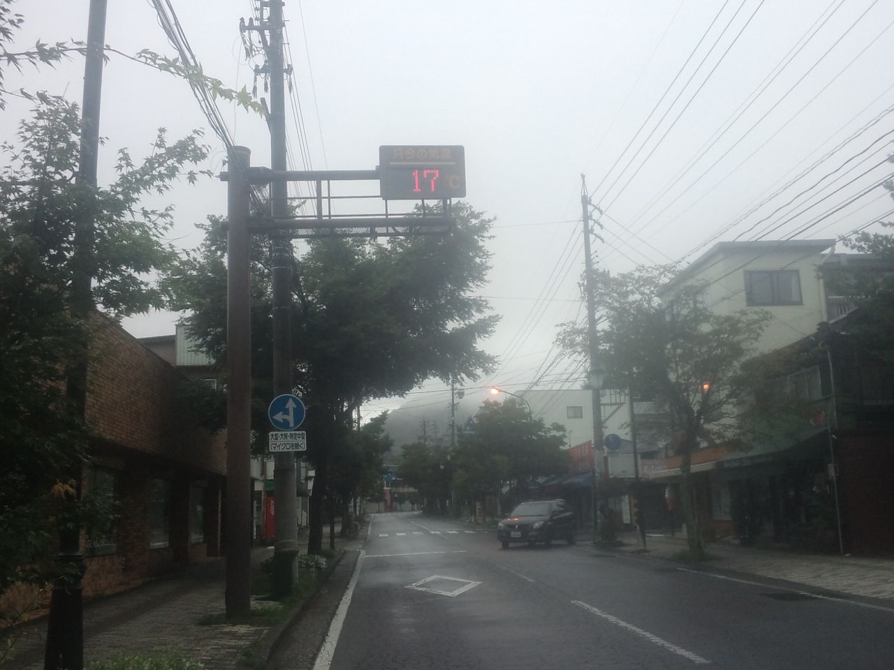 今朝の軽井沢の気温は17℃、天気は雨が降ったり止んだりです。