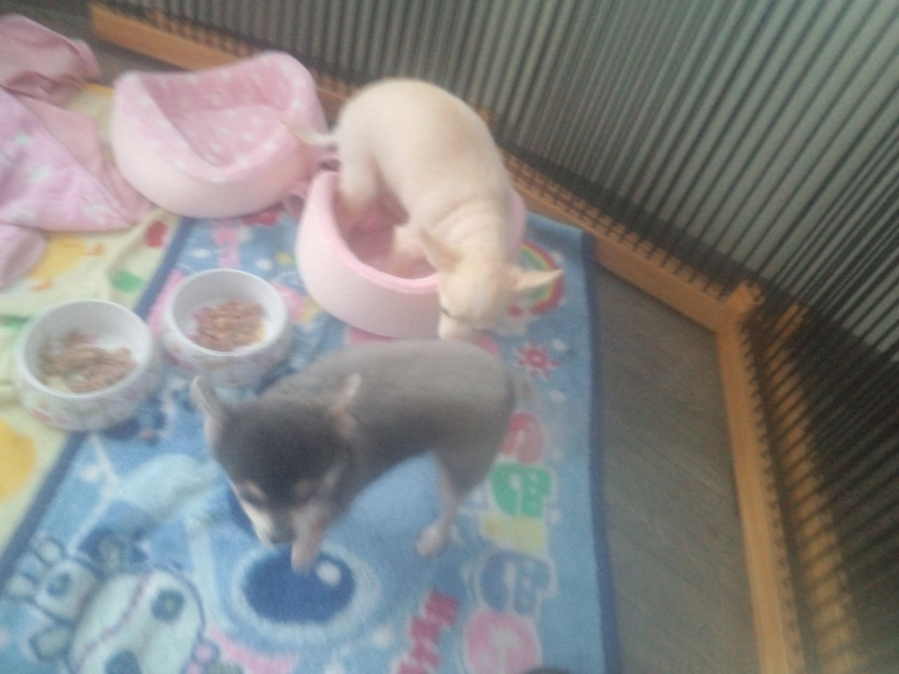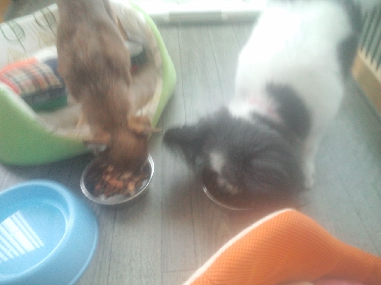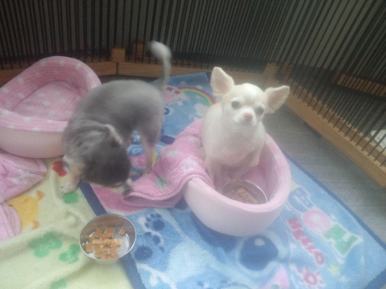 長期預かりパピヨンリュウ君とチワワココちゃん、しっかり完食しました。