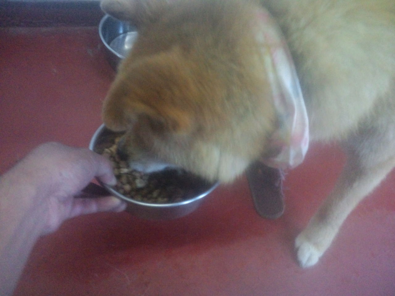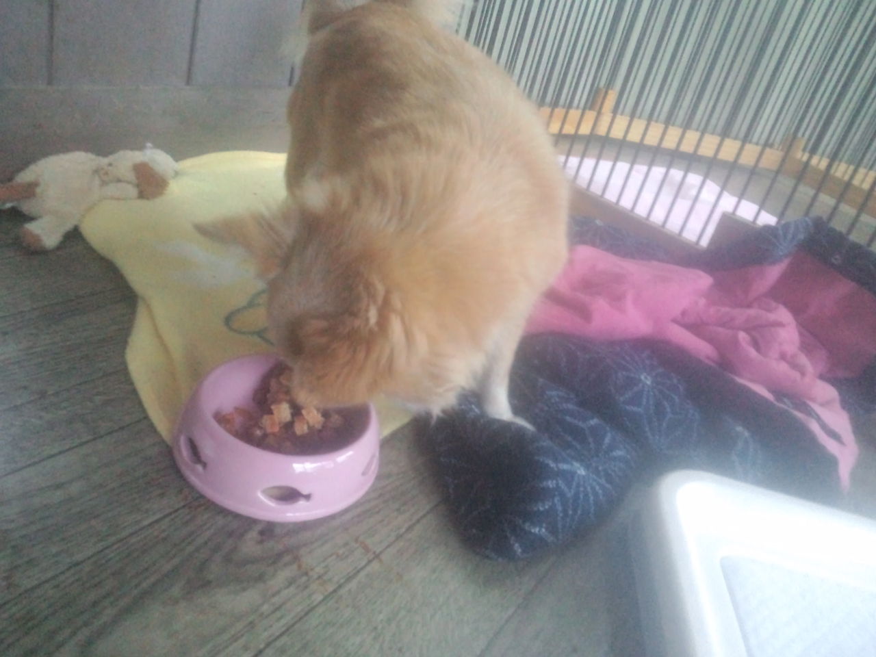 チワワさくらちゃん、口を付けません。モモちゃん、ほぼ完食しました。