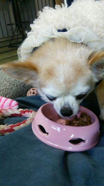 生涯お預かりチワワ姫ちゃん、ダックスラブくんしっかり完食しました。