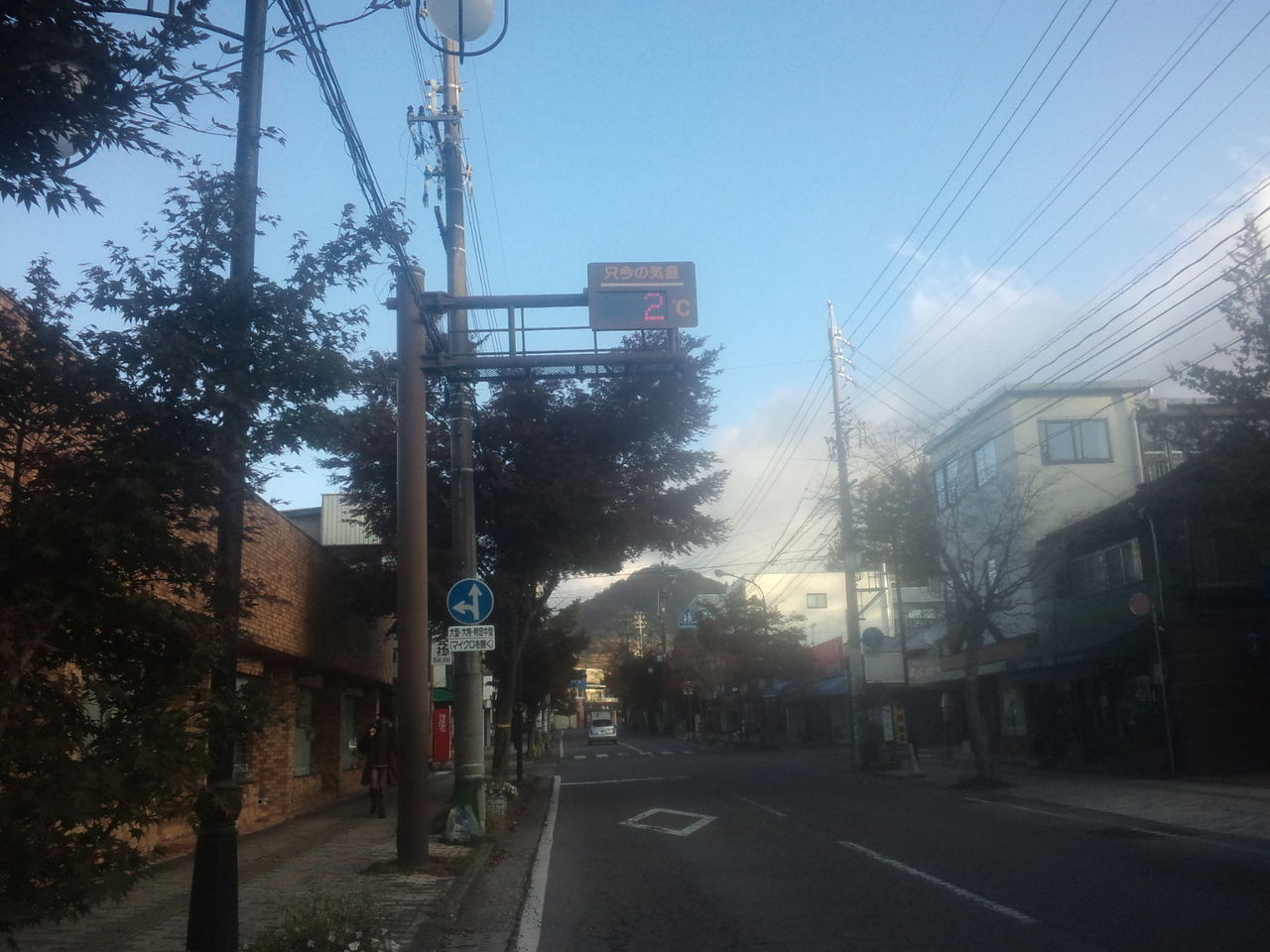 今朝の軽井沢の気温は2℃。天気は秋晴れです。
