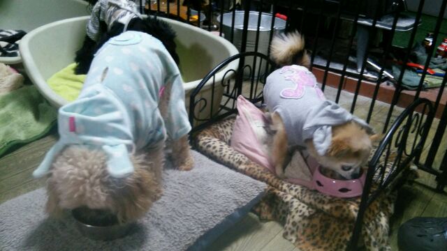 長期お預かりトイプーゆずちゃん、キャバリア大吉くんしっかり完食しました。