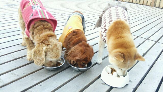 生涯預かり柴凛ちゃんとジロー君、ミックスポー君とラブラドールマリンちゃん、コッカーチャッピーちゃんしっかり完食しました。