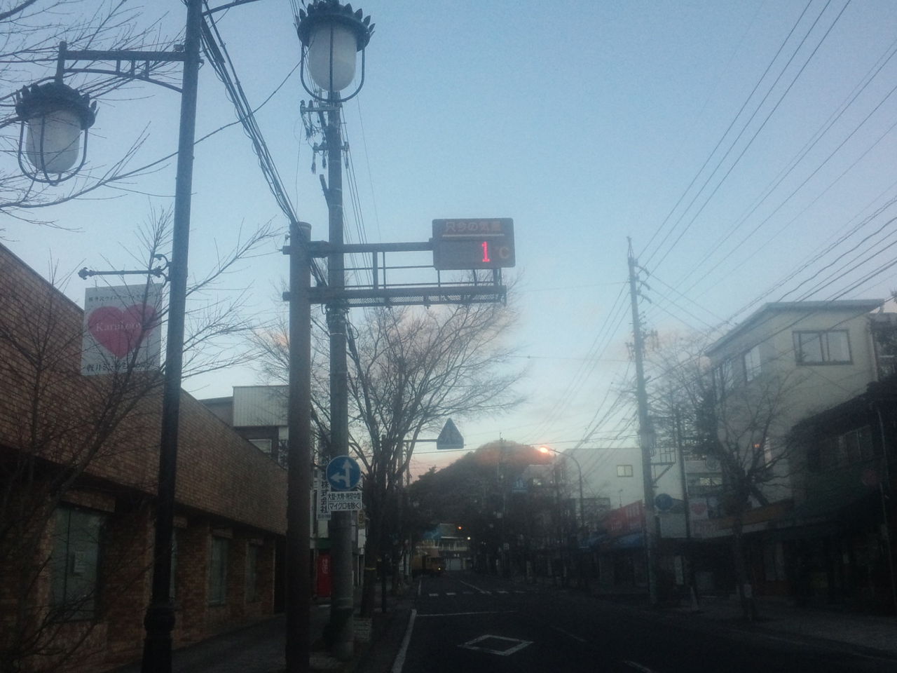 今朝の軽井沢の気温は1℃。天気は晴れてます。