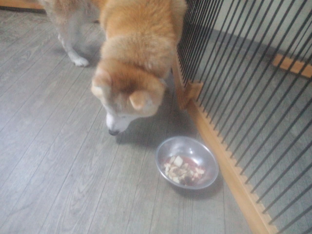 生涯お預かり柴犬さくらちゃん今日は鶏肉をあげました。しっかり完食しました。