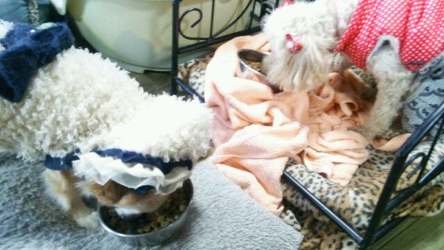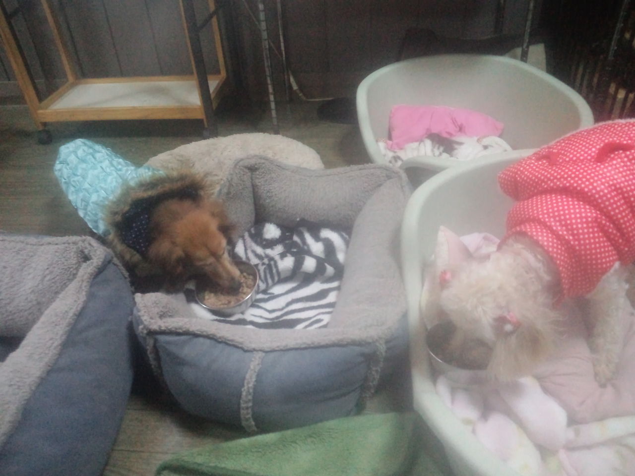生涯預かりトイプーテディ君とベラちゃん、長期預かりゆずちゃんしっかり完食しました。