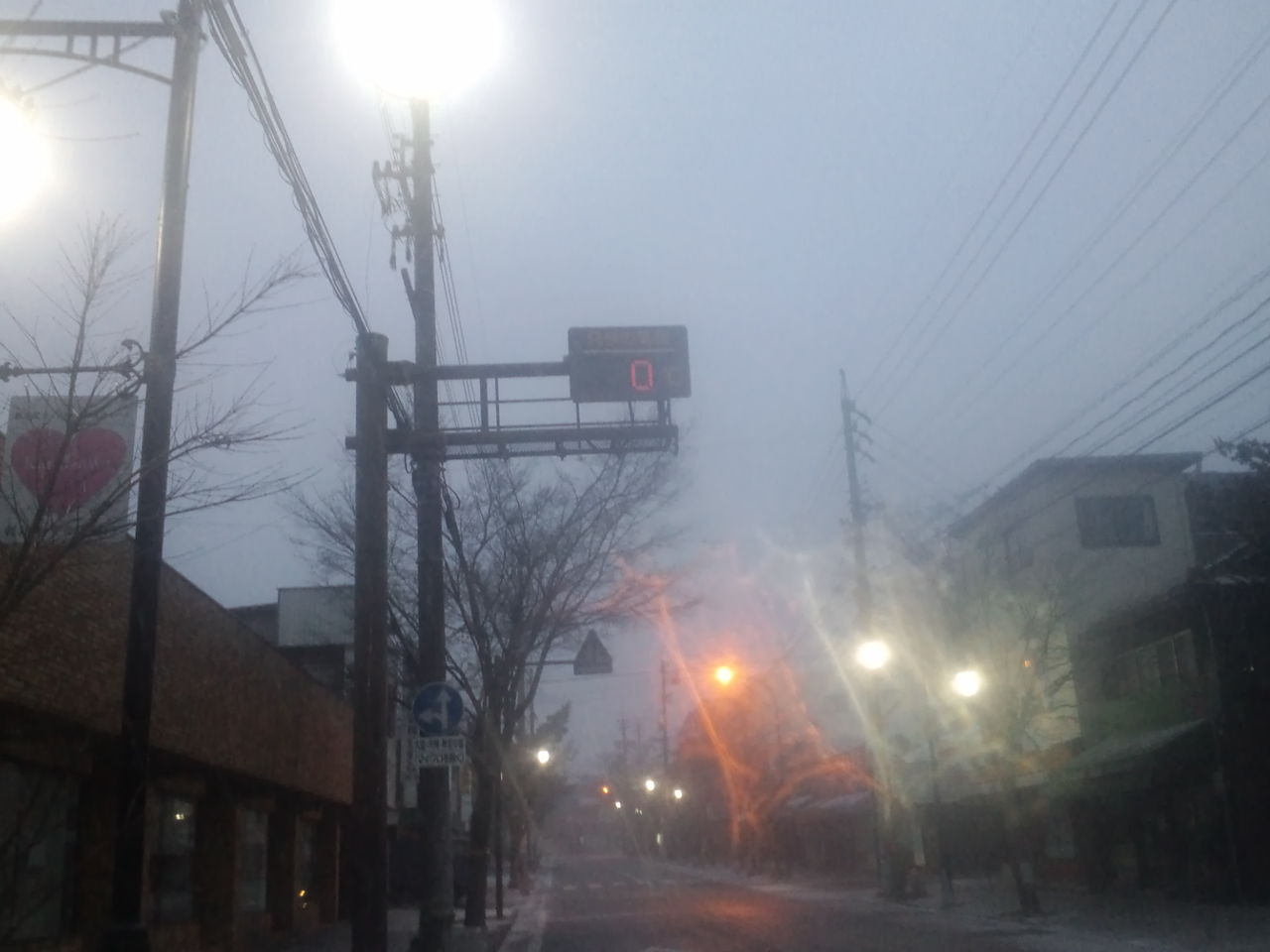 今朝の軽井沢の気温は0℃。天気は雪が降ってます。
