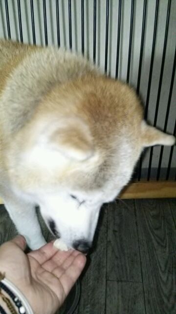 生涯お預かり柴犬さくらちゃん今日は鶏肉をあげました。手からの方が食べるので手からあげるとよく食べます。