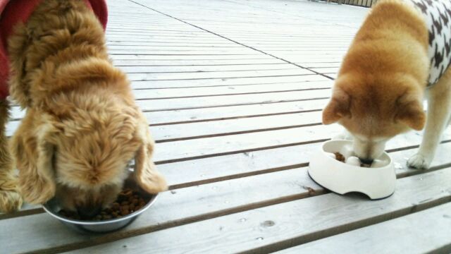 生涯お預かりコッカーチャッピーちゃん、柴犬凛ちゃんしっかり完食しました。