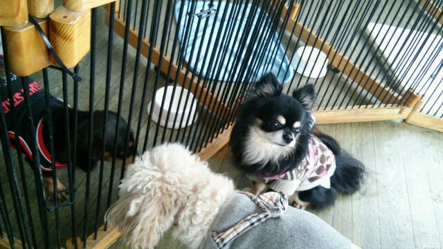 鳴き叫んでいたのもすぐに止めて、みんなとサークル越しに挨拶しています。
