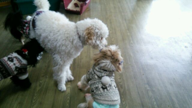他のワンちゃんが挨拶をしに来ても匂いを嗅ぐので忙しい2匹です。 2匹共マイペースですね♪